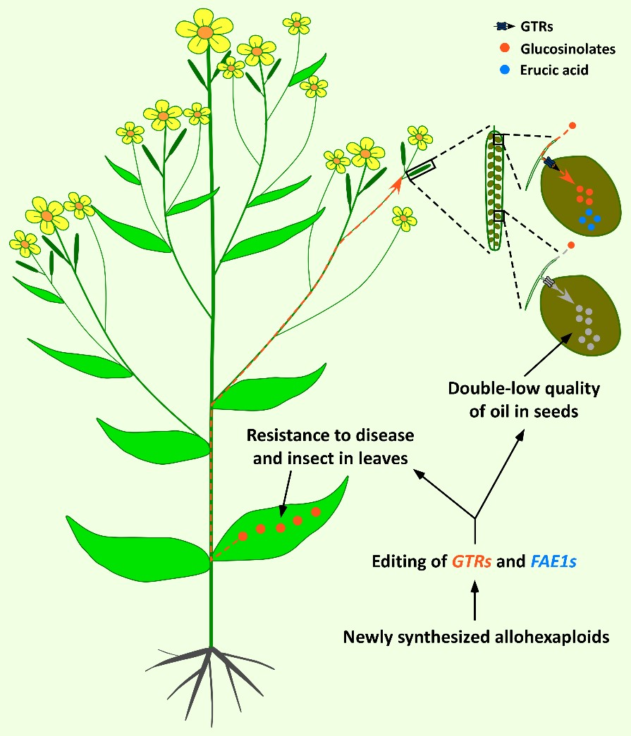 该文章以课题组近年来在异源多倍体的种质创制及机制解析为基础,以十字花科异源六倍体合成为例,系统概述了利用有性杂交和无性嫁接途径创制异源多倍体及其潜在的优缺点,描述了多倍体化如何在细胞遗传学、遗传学和表观遗传学水平上引起的遗传变异、基因组表观修饰和全基因组水平上转录重编程等,并重点介绍基于基因编辑手段对新合成的异体多倍体进行从头改良的应用进展。