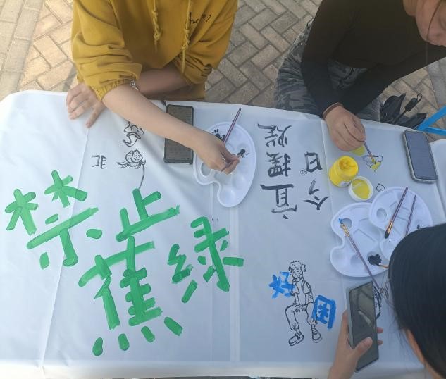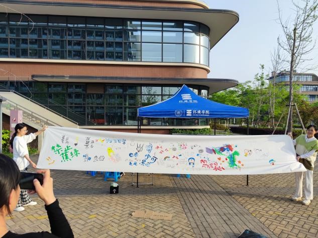 本次活动面向仓前校区所有学生,同学们也是十分热情,围绕在画卷旁边,气氛活跃。活动开始之时,工作人员首先给同学们介绍了本次活动主题与主要内容,并引导感兴趣的同学入座,给他们分发绘画材料,由他们进行自由创作。