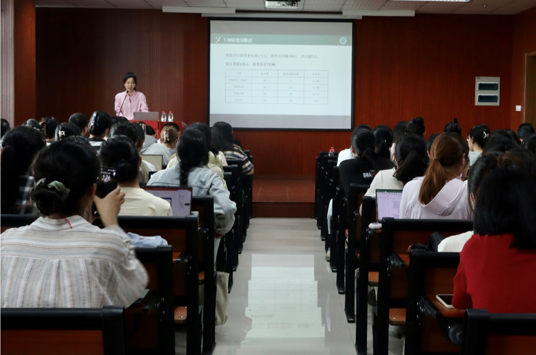 院学工办主任陈好介绍了2023年重庆时时彩 考研情况,剖释了报考率、上线率、录取率、双一流考取率等数据,帮助同学们正确认识当前考研形势。