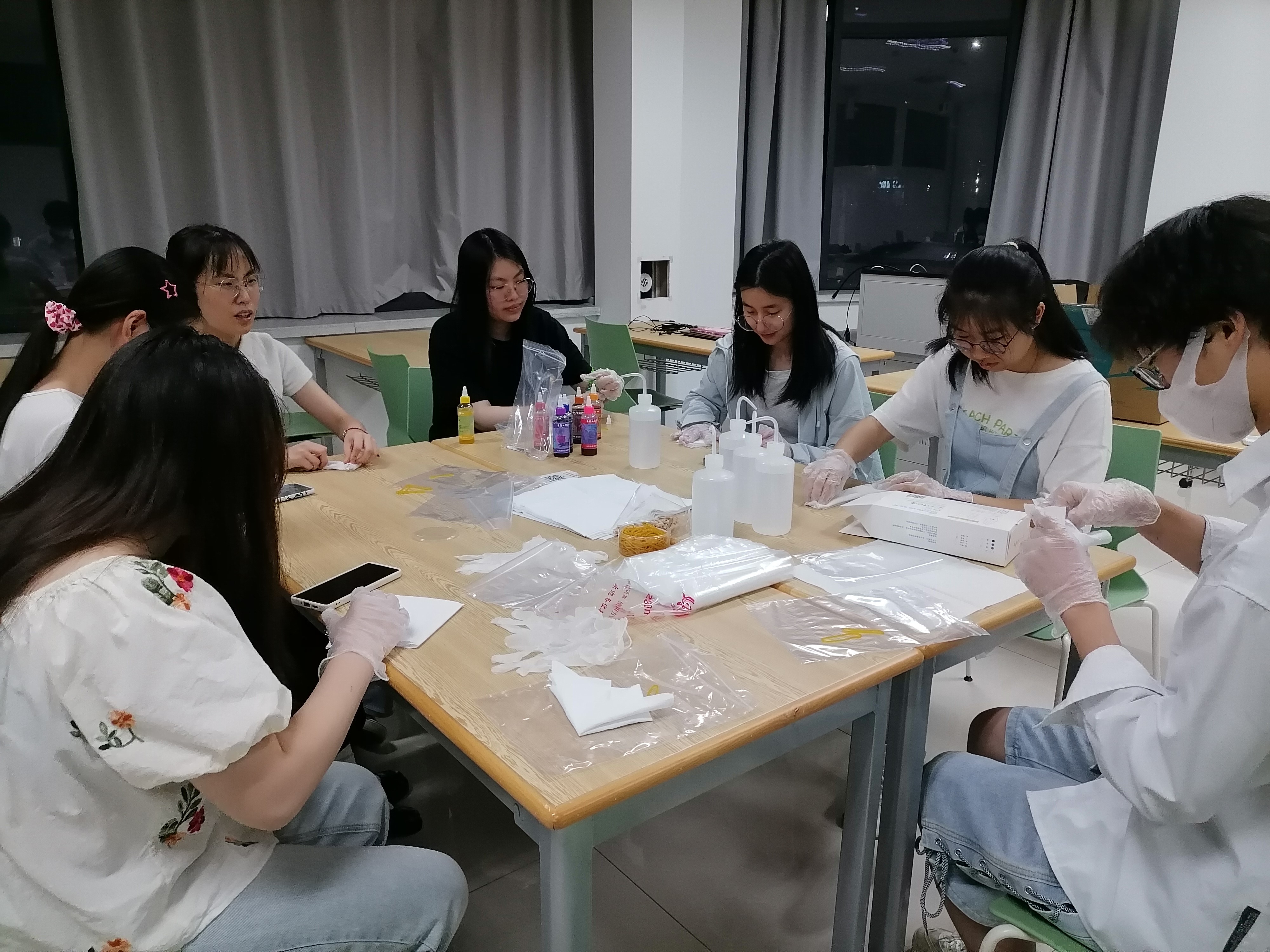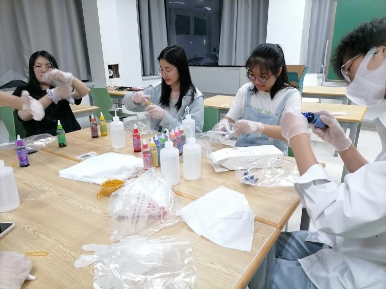 扎染是中国传统的手工染色技术之一,此次活动丰富同学们的大学生活,放松身心,陶冶情操。让同学们在活动中学会与他人沟通,感受合作的乐趣。与此同时,让同学们深刻感受民间工艺制作的魅力,提高同学们的动手能力,在制作过程中培养大家的观察力,创造力,想象力。