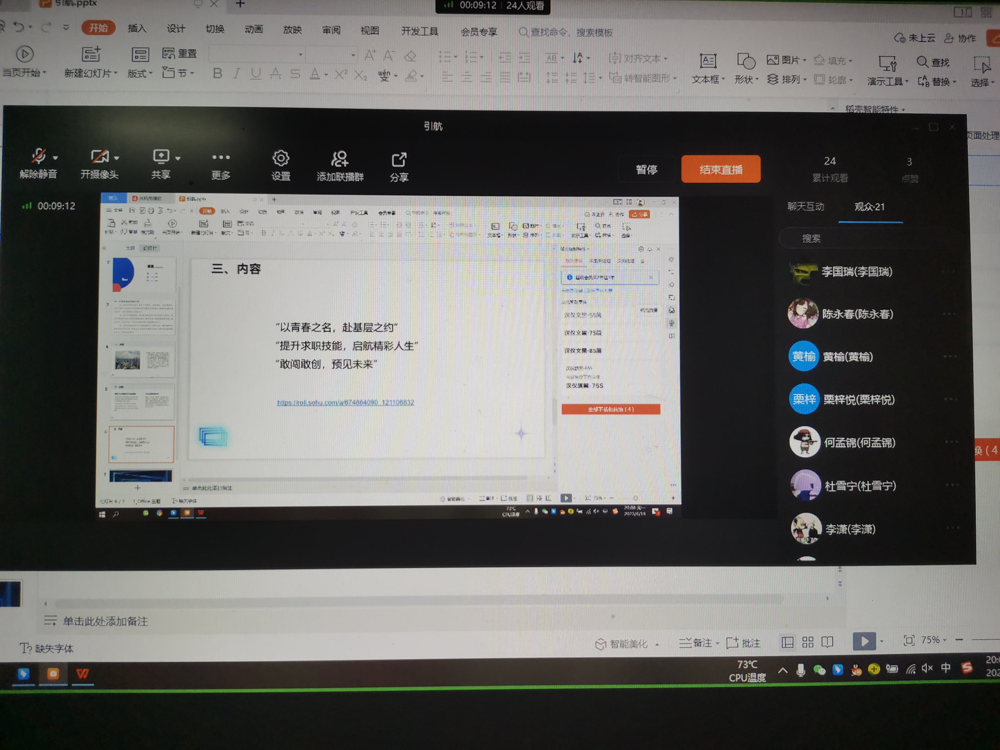 为了使同学们在就业问题上能够更加的清晰,积极面对就业问题,在此次团日活动中,环工201班采取的线上的形式,组织班级同学观看相关视频并就就业创业知识进行宣传。通过视频不仅使同学们对自我价值、就业创业知识有了更进一步了解,还有利于广大同学提高就业创业能力与自我管理能力,充分调动了同学们参与到团日活动中来的积极性。