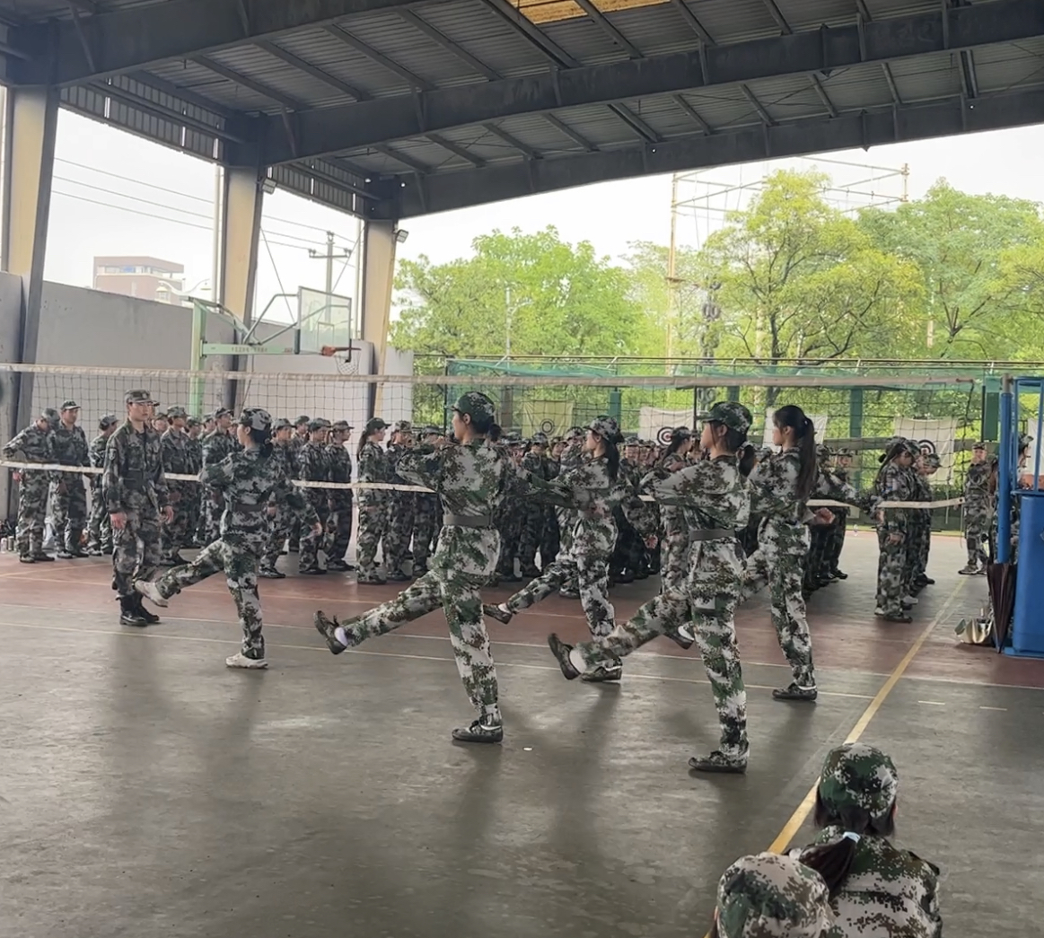 歌声,掌声,欢笑声不绝于耳,似乎也冲破了连续阴雨天气的阴郁。纵使乌云遮蔽了太阳的光芒,训练场中却是明亮晴朗。整齐划一的步伐,富有节奏的踏步,坚定挺拔的身形,大家的音容笑貌,或许会成为我们永恒的回忆。