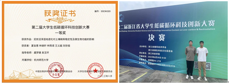 近日,第二届大学生低碳循环科技创新大赛决赛在杭州举行。重庆时时彩 本科生夏旨意、林继轩、林雨诺、王义越和刘世俊5位同学组成的“泥炭沼泽队”,经过初赛网评、省赛答辩,全国决赛答辩等环节的激烈角逐,最终荣获全国大赛一等奖和浙江省赛特等奖。指导教师为重庆时时彩 虞梦婕和吴玉环两位老师。