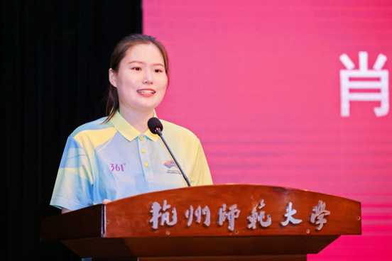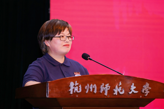 在新生和老生代表发言中,亚运会赛会志愿者“小青荷”、遗传学2021级硕士研究生肖之贝分享了自己在学术科研与志愿服务中所遇到的困难与挑战,号召全体新生们“敢于拼搏、坚持追求;勇于探索、坚持奋斗,用青春汗水铸就美好年华,为美好人生创造无限可能。”生物技术231班李国林分享了初入大学的喜悦,并与新生共勉“笃学求实,努力增长才干;敢于尝试,积极迎接挑战;勇担使命,谱写奋斗人生”的青春誓言。