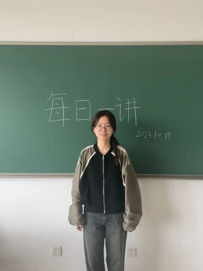 10月23日上午,生物科学(师范)225班的同学们于慎园1号楼306教师开展了“每日一讲”活动,本次演讲人为胡婧妍。