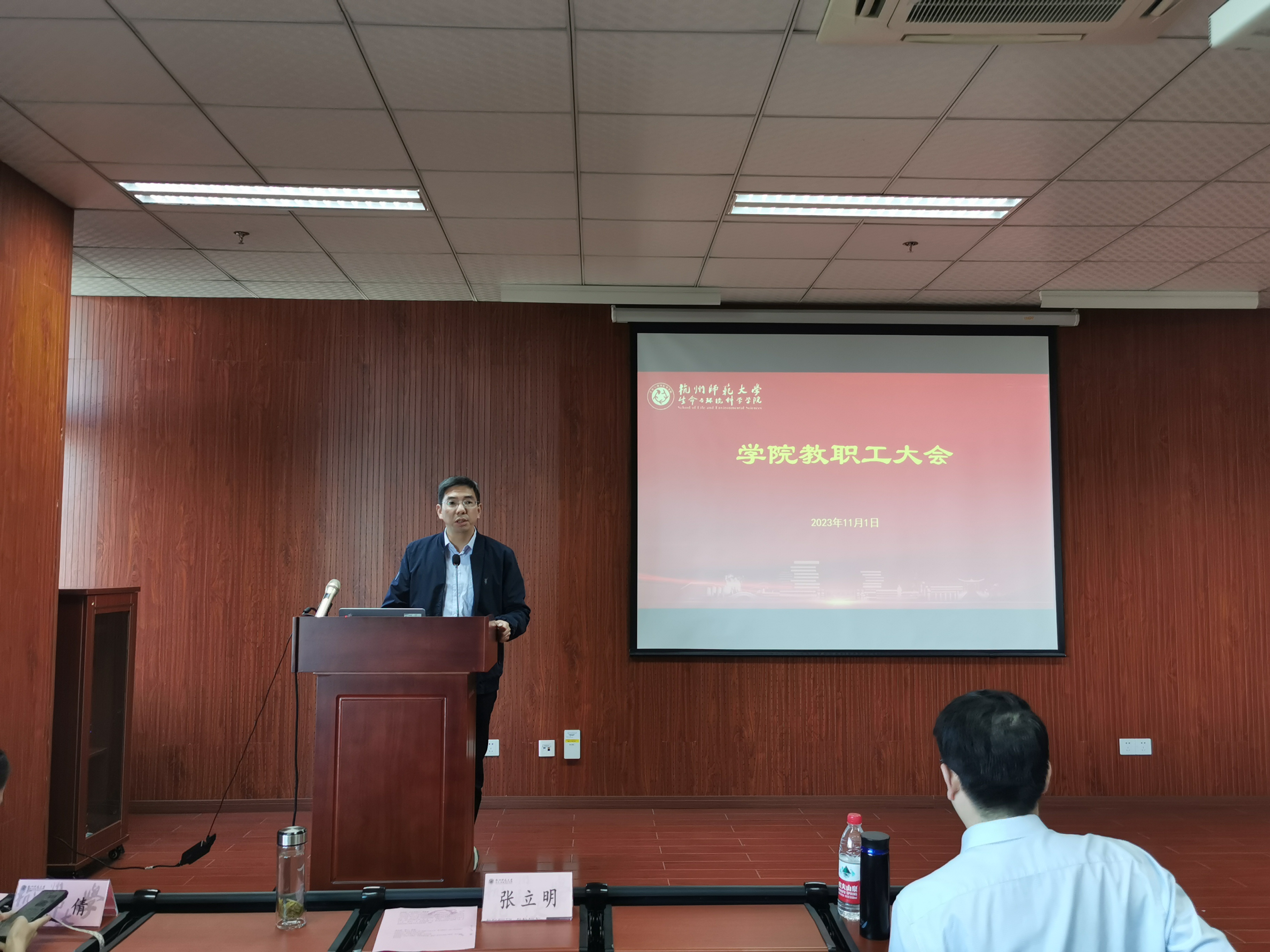 2023年11月1日下午,重庆时时彩 召开全体教职工大会,集体学习贯彻习近平新时代中国特色社会主义思想。此次会议由党委副书记王倩主持。