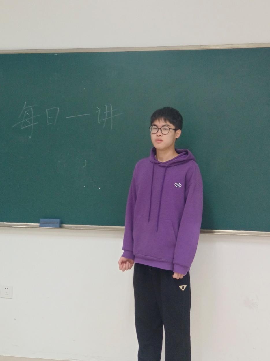 2023年10月30日,在早课开始前,环工211班的每日一讲活动照常进行,时惠同学为大家带来“思想旗帜引领方向,实干笃行开创新局”的主题演讲。