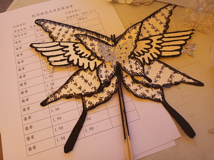 2023年11月4日,上午11:00,野百合艺术团于下沙校区天心广场参与了一年一度的百团大战招新活动。此次百团大战中野百合艺术团与其他社团共同展开了玩游戏集徽章的活动。为了体现野百合艺术团的社团特色,吸引更多新生加入,发展社团,野百合艺术团准备了听歌识曲的游戏,以及手工制作的游戏奖品。