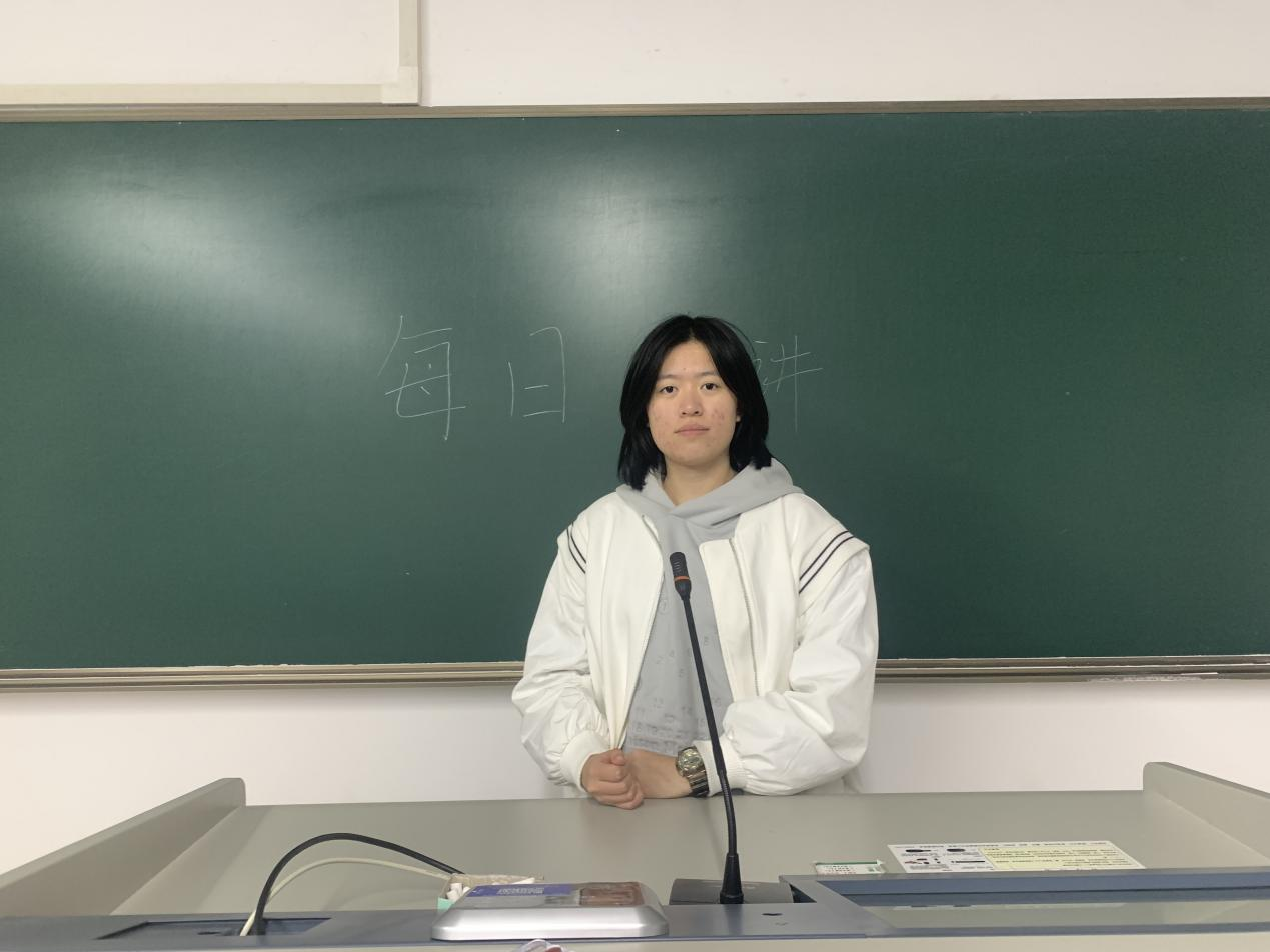 2023年11月12日,生科235班的丁诺宣以“展望国家建设,谋求民族复兴”为主题在班级进行了“每日一讲”活动的主题演讲。
