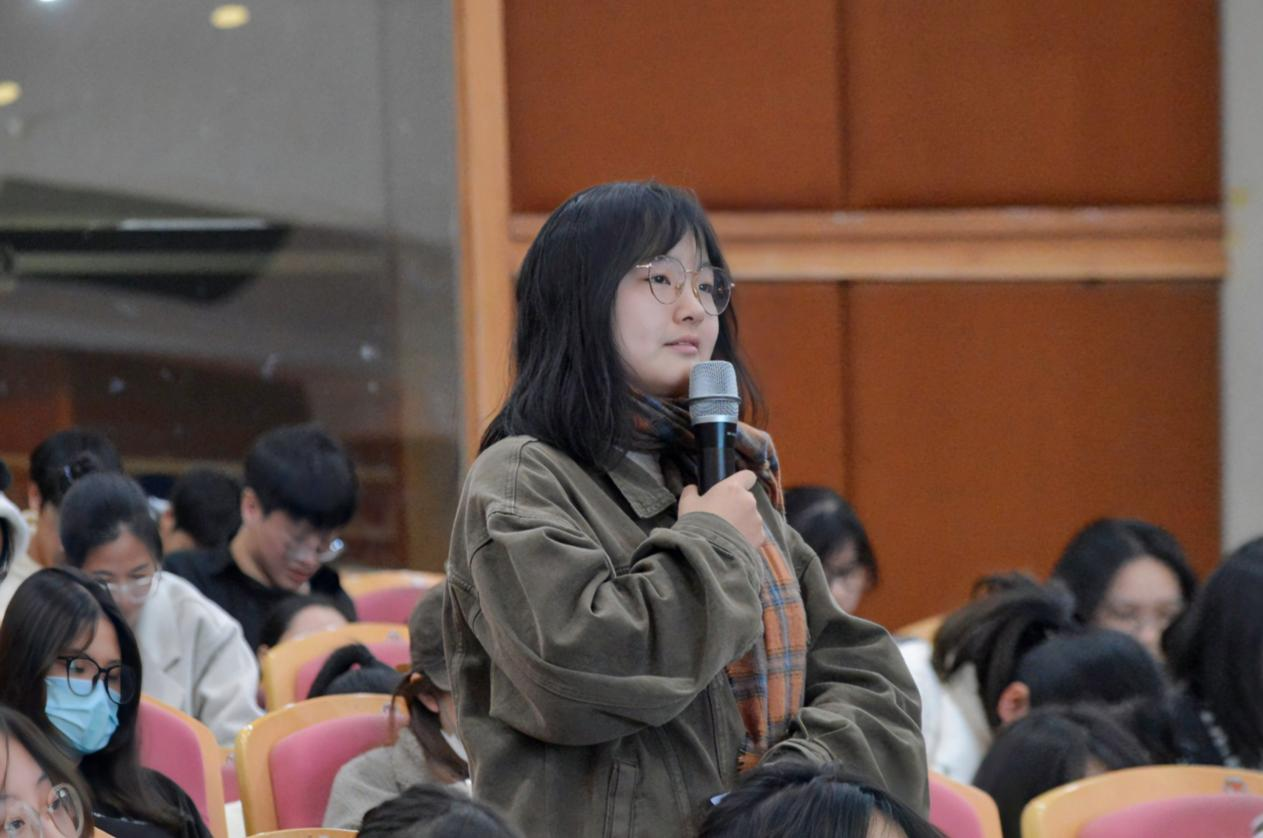 在提问环节中,同学们踊跃提问,黄岳杰勉励同学们坚决的坚持自己,并以自己的行为去改变别人;脚踩“武陵”,心系“桃花源”,把“桃花源”的美好带给身边的人。