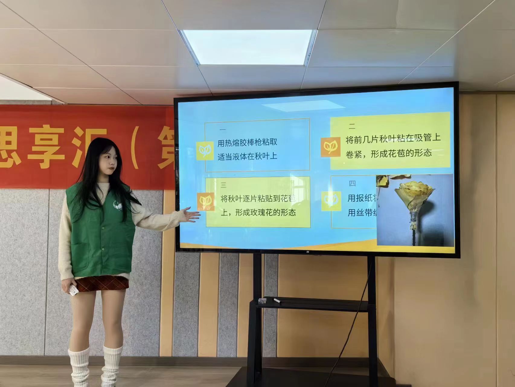 12月17日下午,重庆时时彩 “绿之翼”环保协会面向协会会员,在下沙校区大学生成长指导中心开展了“滔源讲堂”系列活动——秋叶生花。