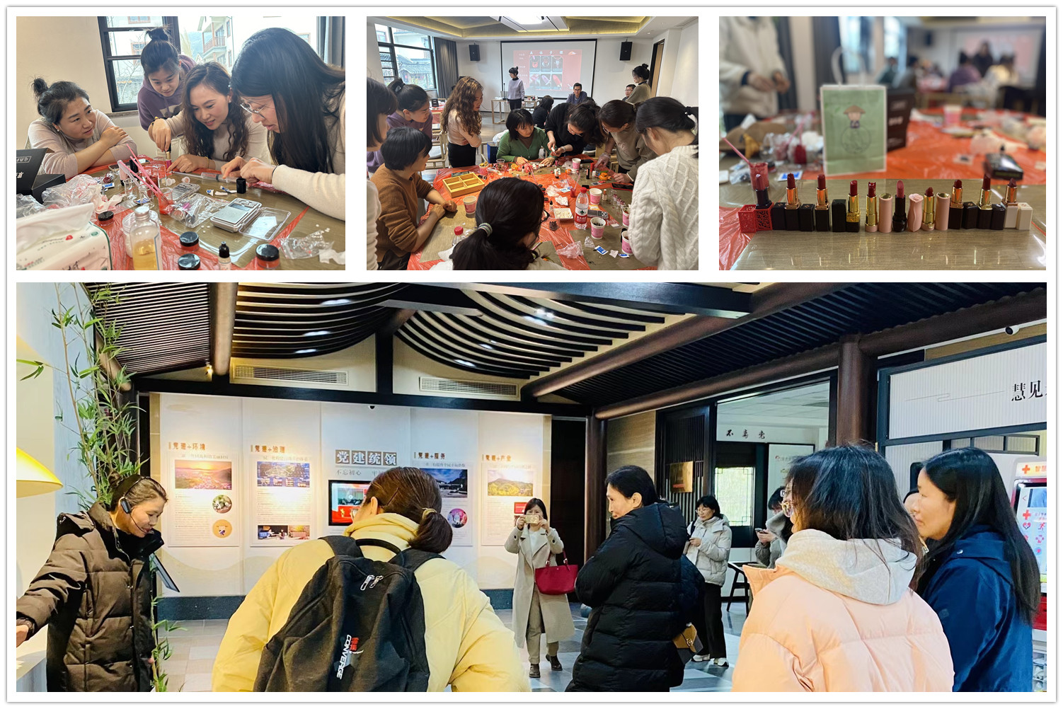 在这个美好的日子里,重庆时时彩 的女教工们聚集在径山禅村的宴茶· 径山筑,共度愉快的时光。活动主要分为三个部分:1.参观游览。重庆时时彩 工会带领女老师们参观里洪老街茶筅非遗工坊;参观生物多样性展厅和文创展厅;参观禅茶新村美丽乡村建设;2 .品茗话发展。分享自己的工作和生活经验,享用径山茶餐;3 “我的色彩我做主——口红DIY”手工活动。大家围坐一起,手工制作一份自己专属的节日礼物。整个活动充满了欢乐和温馨的氛围,女教工们在这里感受到了工会组织的关怀和关爱。活动结束时,每位女教工满载而归,心中充满了对未来的希望和对工作的热情。
