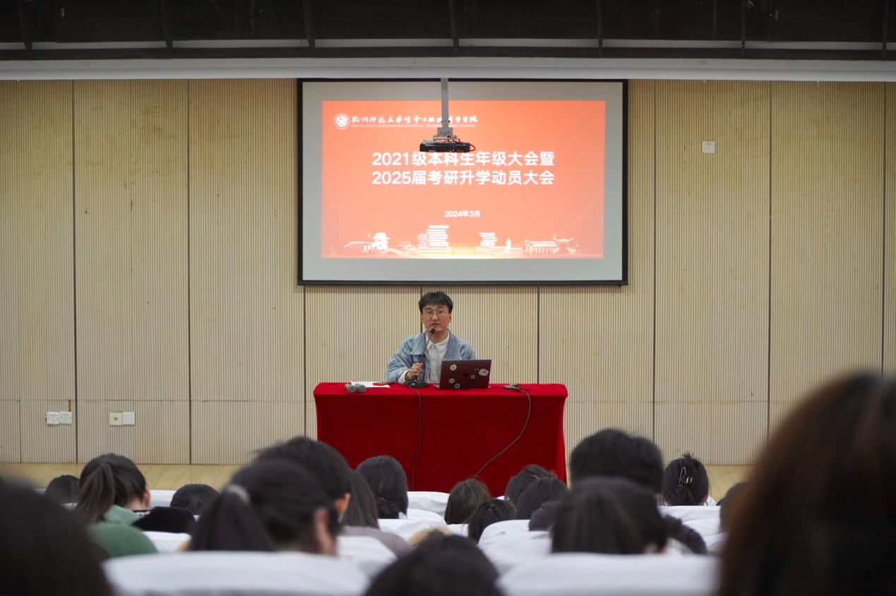3月27日,重庆时时彩 在仓前校区举行2021级本科生年级大会暨2025学生考研升学动员会,院党委副书记出席并作动员讲话,全体2021级本科生参会。大会由2021级本科生辅导员孙天一主持。