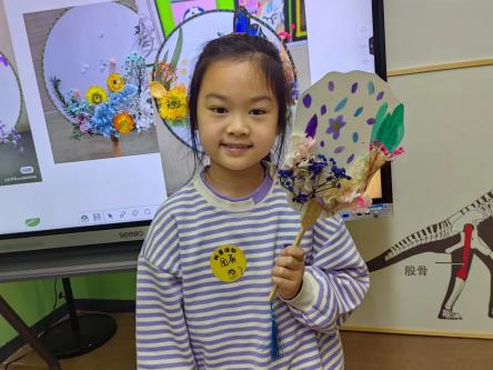 活动现场,讲解员为孩子们讲解如何将干花巧妙地编织在团扇上,再加上自己想要的绘画,引导他们发挥想象力,创造出属于自己的艺术作品。孩子们认真倾听、仔细观察,在心中构思着自己心中的团扇。