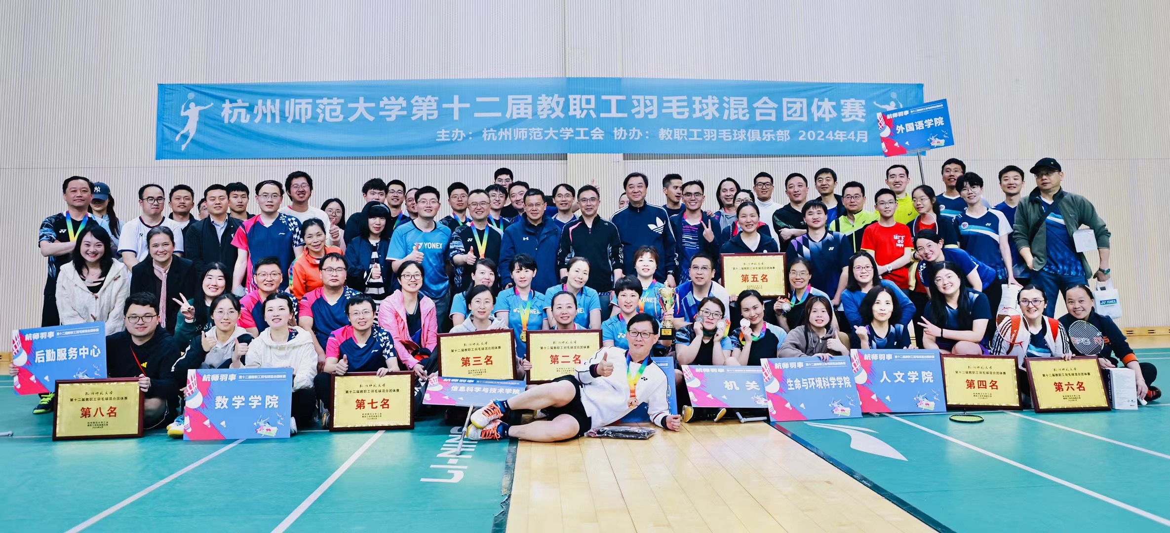 近日,校第十二届教职工羽毛球混合团体赛在仓前校区羽毛球馆举行,来自全校17个分工会的教职工代表队参加,竞争异常激烈。