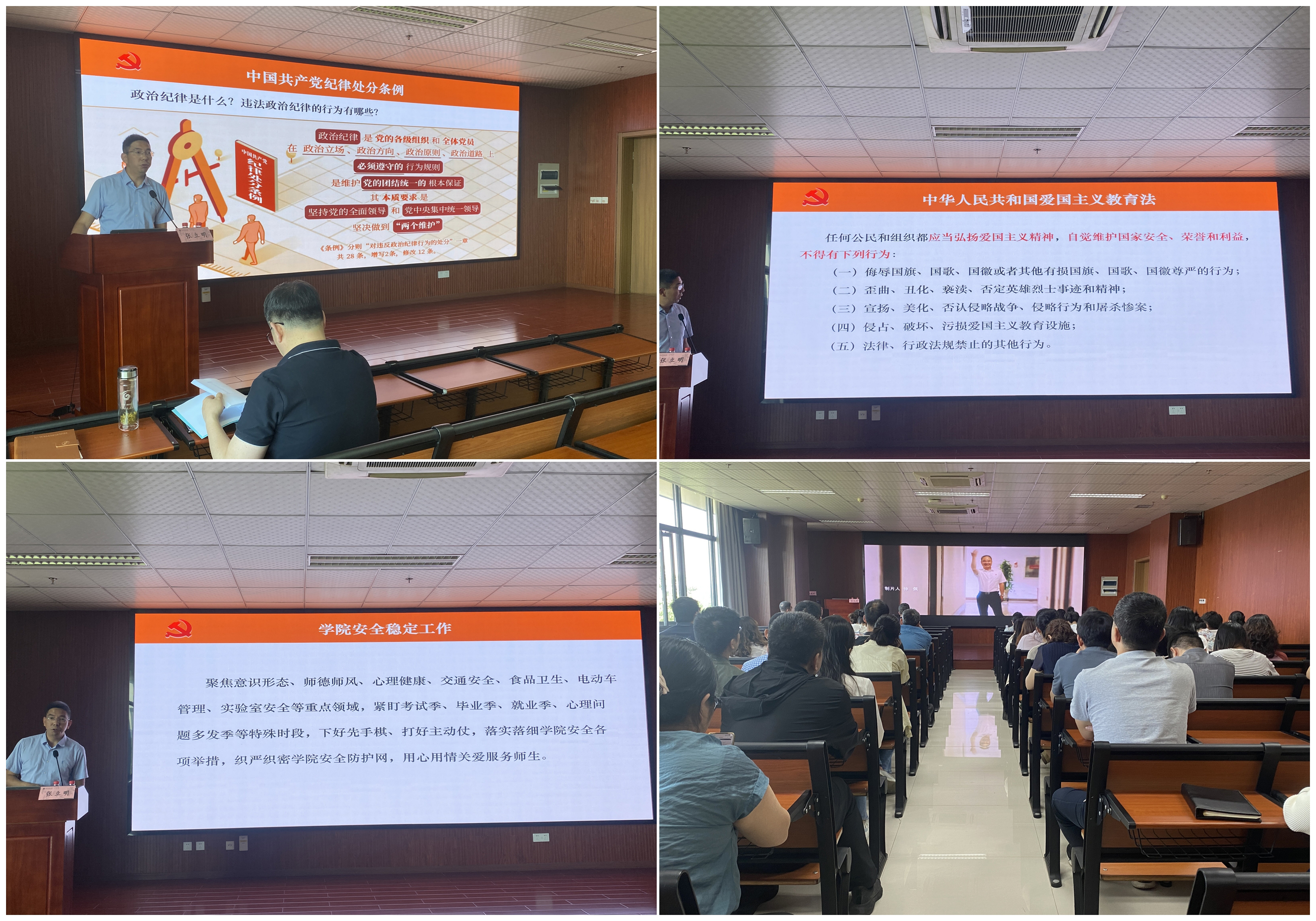 结合法规条例学习,张立明书记在师德师风、心理健康、交通安全、电动车管理、实验室安全等重点领域,要求教职工紧盯考试季、毕业季、就业季、心理问题多发季等特殊时段,落实落细重庆时时彩 安全举措,用心用情服务关爱师生。会后,教职工集体观看了党纪教育片《粮心》和《人无再少年》。