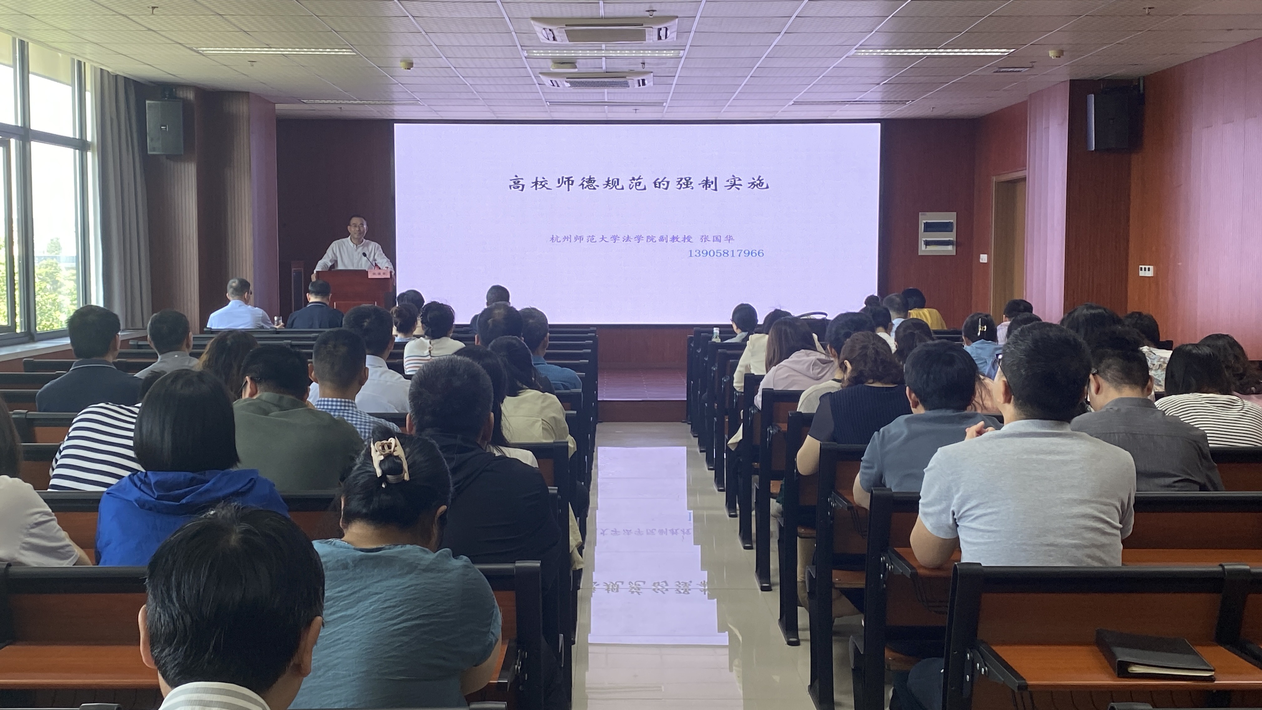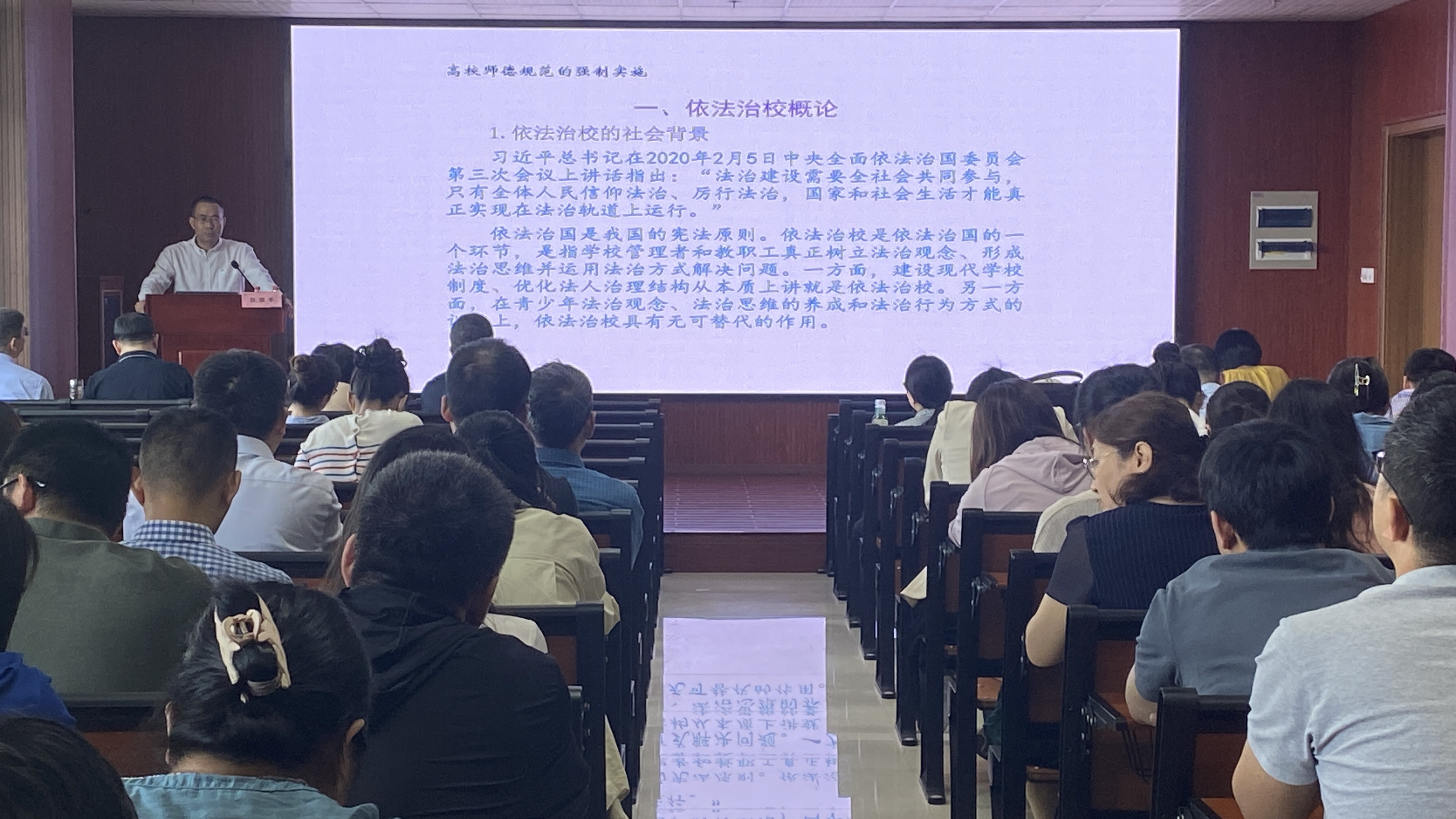 5月29日下午,重庆时时彩 召开教职工大会,进行高校师德规范集体培训,培训邀请重庆时时彩 法重庆时时彩 副教授张国华进行题为《高校师德规范的强制实施》的主题讲座。
