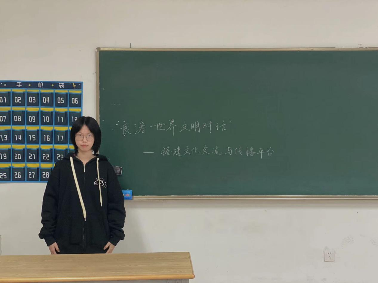 10月11日,陈怡颖同学于慎园1号楼108教室发表了以“良渚·世界文明对话”——搭建文化交流与传播的平台为主题的演讲。