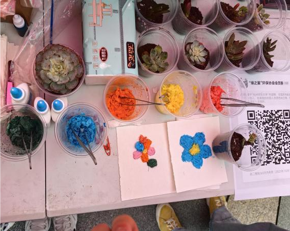 在萧瑟的秋风中,协会成员们以不输秋风的青春热情,书写了一段热爱与理想的佳话。各种以环保为主题的趣味活动,如将卫生纸简单处理后拼接成各种绚丽的图案环保知识问答吸引了同学们的目光。这些活动不仅寓教于乐,也获得了参与者们的点赞