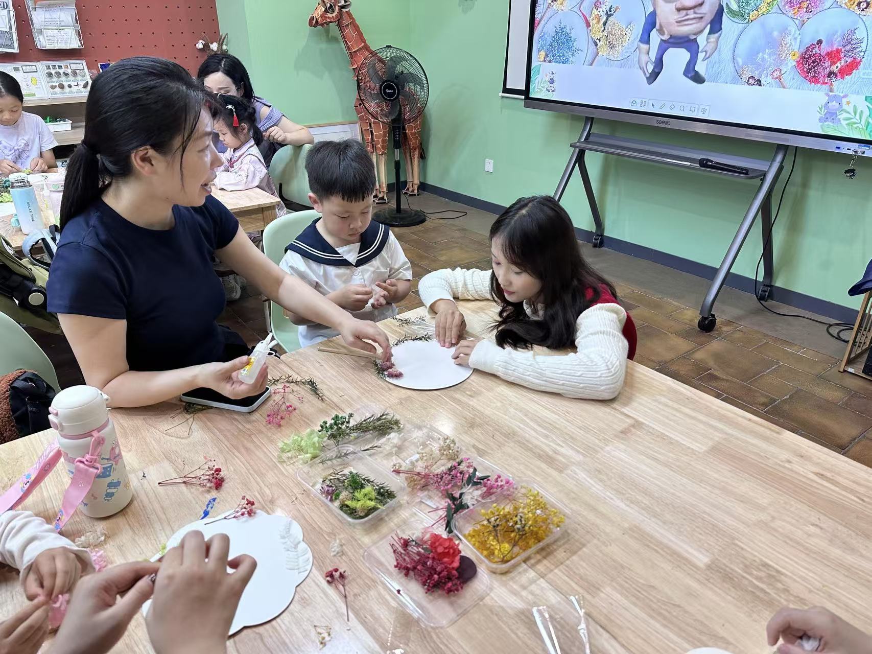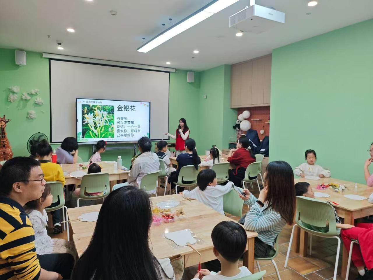 活动伊始,由主讲人介绍常见的花卉及各省省花,小朋友们积极回应,气氛活跃。多彩的团扇引发孩子们赞叹,主讲人继而通过提问调动其积极性,并详细讲解干花团扇制作流程,使气氛达到高潮。在社员和家长帮助下,孩子们发挥童真与创造力,绘制出精美图案。活动期间,社员们积极与家长、孩子沟通,科普花卉和团扇知识,维持现场秩序,积极提供帮助并拍照留念,展现良好服务精神。
