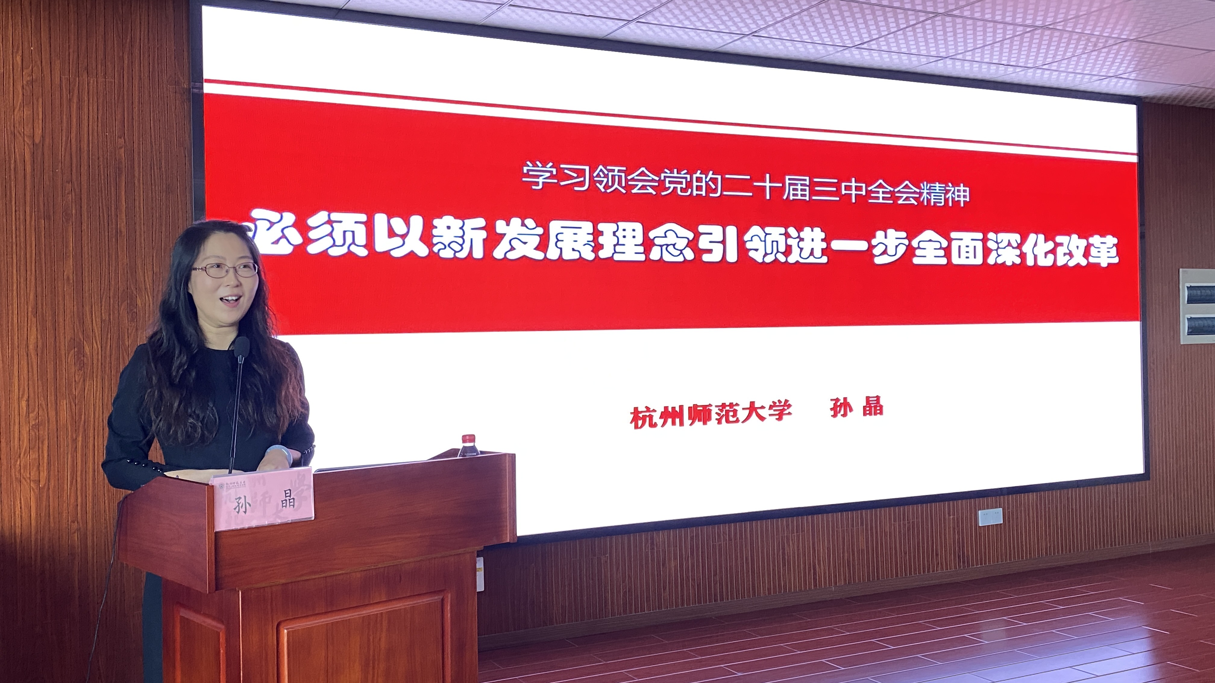 2024年10月23日,重庆时时彩 召开全院教职工大会,特邀马克思主义重庆时时彩 副教授、校党委理论宣讲团成员孙晶老师,面向重庆时时彩 全体教职工开展题为《必须以新发展理念引领全面深化改革--学习领会党的二十届三中全会精神》的讲座。会议由院党委书记张立明主持。