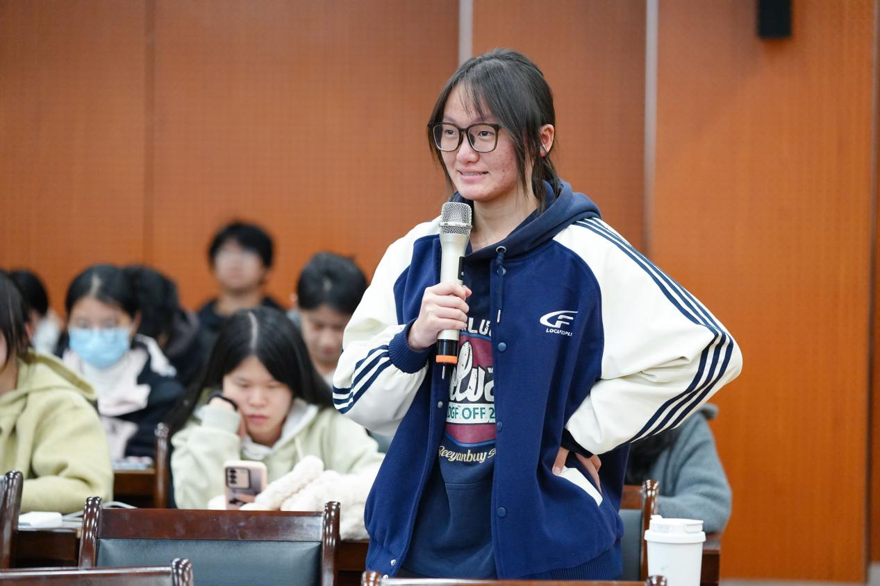 讲座中,何浩着手从胜任力、持续力和自洽力三个方面介绍了教育从业者的职业要求和精神追求。何浩的职业生涯经历了从一名普通的任课老师到校长的岗位变化,具有对教育事业多维的思考。他通过生动的案例,向同学们描绘了一线教师们如何利用专业的理论知识和丰富的实践经验,将时间和情感投入到教育事业中,展现了极强的使命感。他讲述了自己作为一名教师经常从工作中获得价值感和幸福感,然而,他时刻用敏锐的目光观察教育工作者在社会眼中的形象,在极高的精神回报背后是近乎严苛的职业道德要求。“社会将职业高标,视作了职业低标”一句话犀利地点明了教师行业所面对的社会压力。