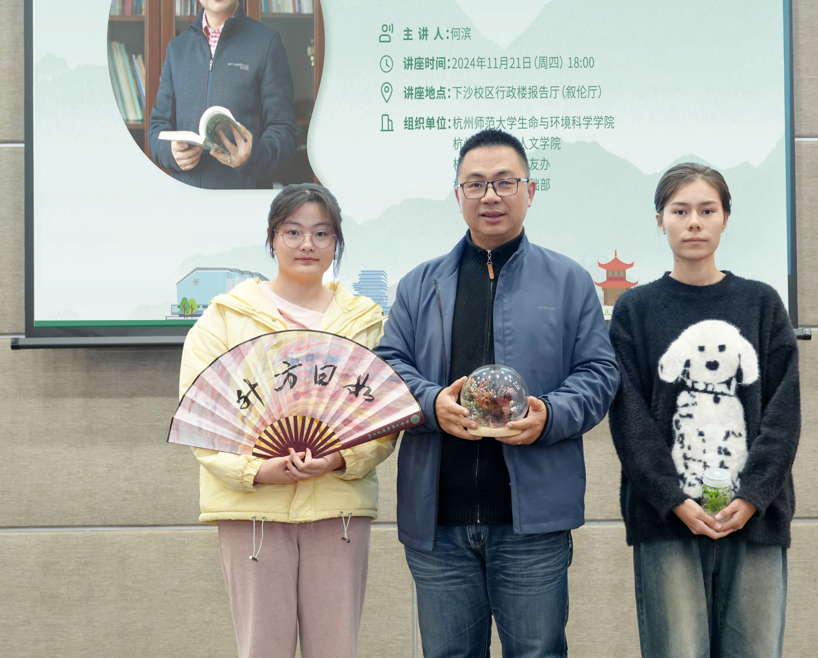现场还进行了“EnCo-LIVE学生领导力素养提升计划”导师团成员及就业创业导师聘任仪式,重庆时时彩 党委副书记王倩为何浩颁发聘书。学生代表为何浩送上了重庆时时彩 同学们制作的“永生花”摆件、组培植物以及非遗漆扇。讲座后师生进行了集体合影留念。