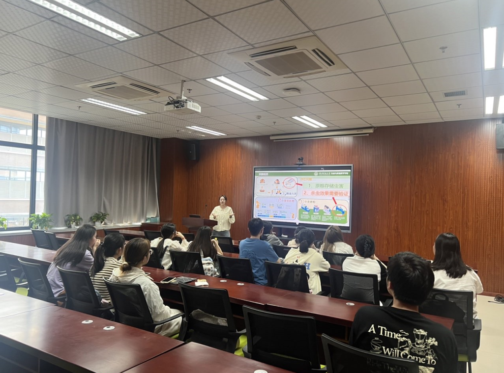 她以 “从课题中找项目,在实践中寻突破” 为核心,结合自身经验给同学们带来暑假社会实践优秀调研报告竞赛及科研实践方法论。她以团队参与的 “低氧浓度下赤拟谷盗HIF1-5α基因调控内源代谢机制研究” 为例,分享了从现实问题中凝练科研方向的过程。在调研中,团队发现面粉加工行业面临严峻的 “虫卵威胁”—— 原粮存储虫害。他们深入企业生产车间,与技术人员密切交流,将这一生产一线的痛点,列为团队攻关的方向。他的团队将学科知识与产业需求紧密结合,为项目注入了实践价值。
