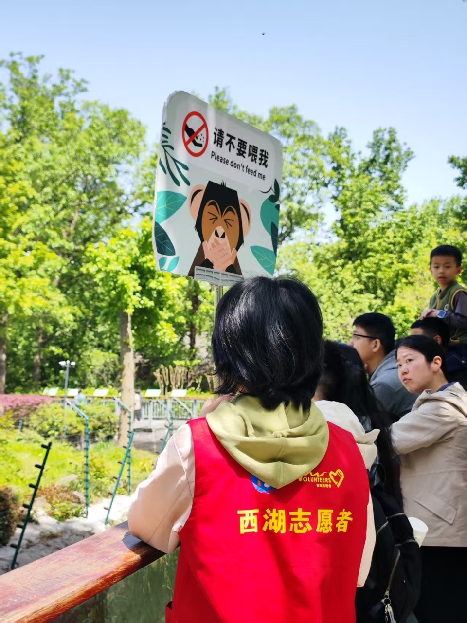 在黑猩猩馆,志愿者们化身为知识的传播者。他们用生动活泼的语言,将黑猩猩的生活画卷徐徐展开——那些灵动的眼神、智慧的举动、独特的社交方式,在绘声绘色的讲解中变得栩栩如生。时而,他们又变身为坚定的守护者,手持“禁止投喂”的警示牌,如卫士般伫立在围栏旁,用温暖而坚定的微笑筑起一道保护屏障。