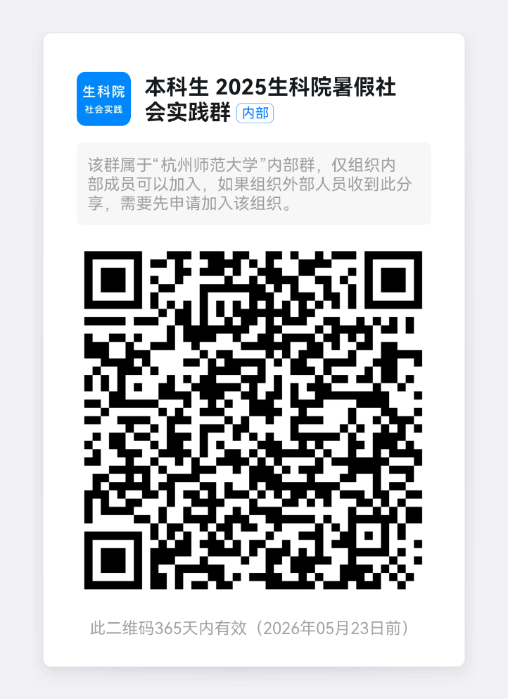 4.沟通群聊:关于本次社会实践活动开展的具体事宜后续将在钉钉群内进行通知,群二维码见下图。