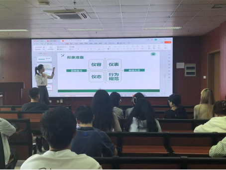 讲座最后,陈老师指出,职场的礼仪是给面试官的重要第一印象,真诚大方、阳光向上的精神面貌和干净整洁的仪容仪表会在无形中为面试者求职大大加分,希望大家都将求职礼仪相关知识内化于心、外化于行,为自己的求职加分。