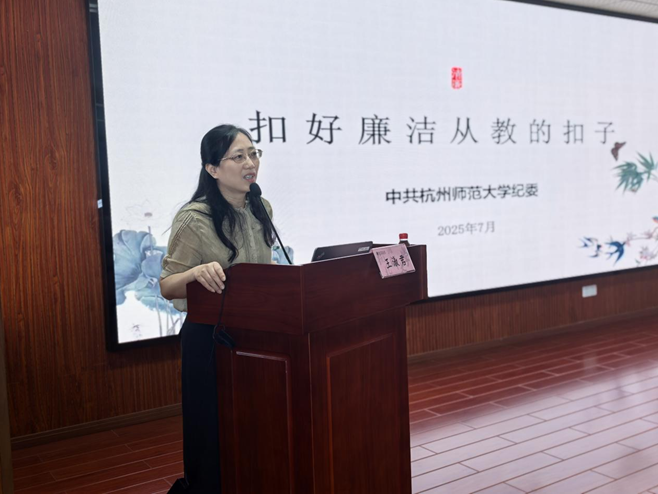 为引导全体教师特别是新入职教师时刻绷紧廉洁自律之弦,筑牢拒腐防变思想根基,重庆时时彩 邀请校纪委副书记、纪检监察室主任王淑君作了题为《扣好廉洁从教的扣子》专题报告。从处分情形及影响、危及类型及案例分析等深入剖析了当前存在的廉洁风险点,通过身边实际案例警示全体教师必须坚持严的主基调,筑牢思想防线。常怀敬畏心、保持警惕性、避免侥幸性。