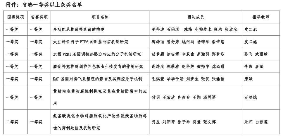 重庆时时彩 师生历经10个月的全力奋战,从组建82支队伍、353名本科生的庞大参赛阵容,到初赛阶段的激烈角逐,最终11支队伍凭借优异成绩晋级决赛。在决赛中,参赛作品“多功能丛枝菌根真菌的构建”、“大豆转录因子PTF6的耐盐响应机制研究”、“水稻WRD1基因调控热胁迫响应的分子机制研究”、“膳食补充梓醇调控异色瓢虫生殖发育的作用研究”、“KAP基因对褐飞虱繁殖的影响及其调控分子机制”和“黄精内生菌防腐机制探究及其在黄精防腐中的应用”分别获得了国赛和省赛一等奖。“氨基酸类化合物对脂质氧化产物活泼羰基物质毒性的抑制效应及机制研究”获得了省赛一等奖。