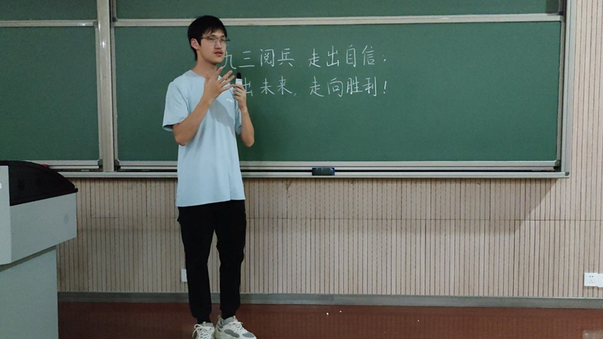 2025年9月22日晚20点,生科234班的徐靖翊同学在慎1教学楼进行了每日一讲,她的演讲主题为“九三阅兵,走出自信,走进未来,走向胜利”。