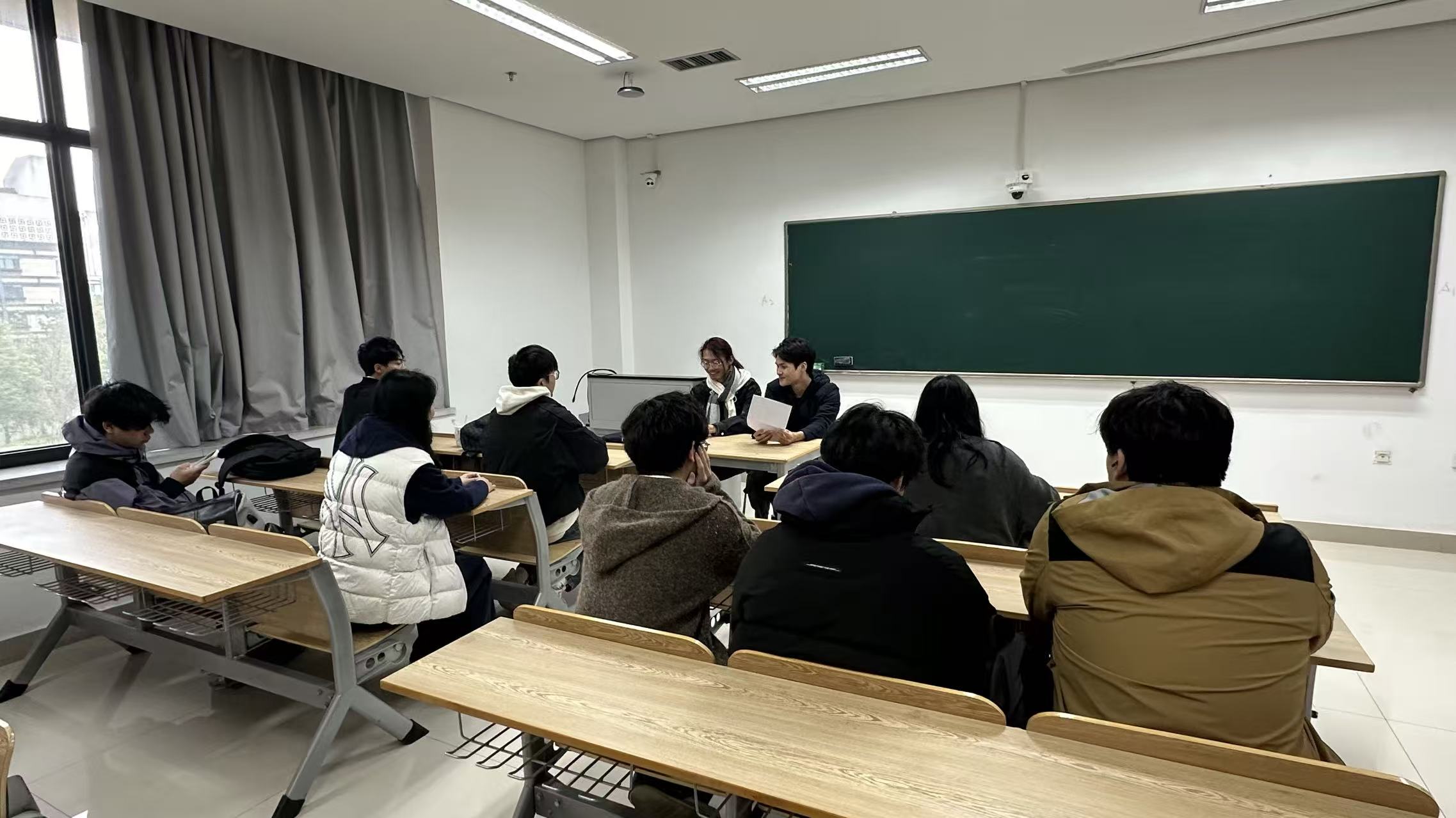活动创新采用“学生模拟面试官”模式,由班级选拔两名综合素质突出的同学担任面试官,提前结合生物科学专业特色与政务岗位需求,精心设计考题。活动以“一对一轮流面试”形式开展,严格参照真实政务招聘标准,设置自我介绍、结构化问答、情景模拟三大环节,考题聚焦生态保护、公共卫生服务等热门政务场景。