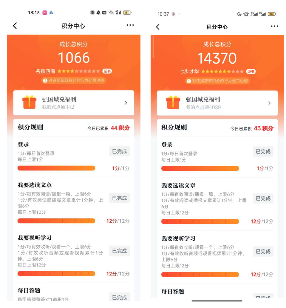 图四 参赛寝室成员学习强国和文献阅读打卡记录