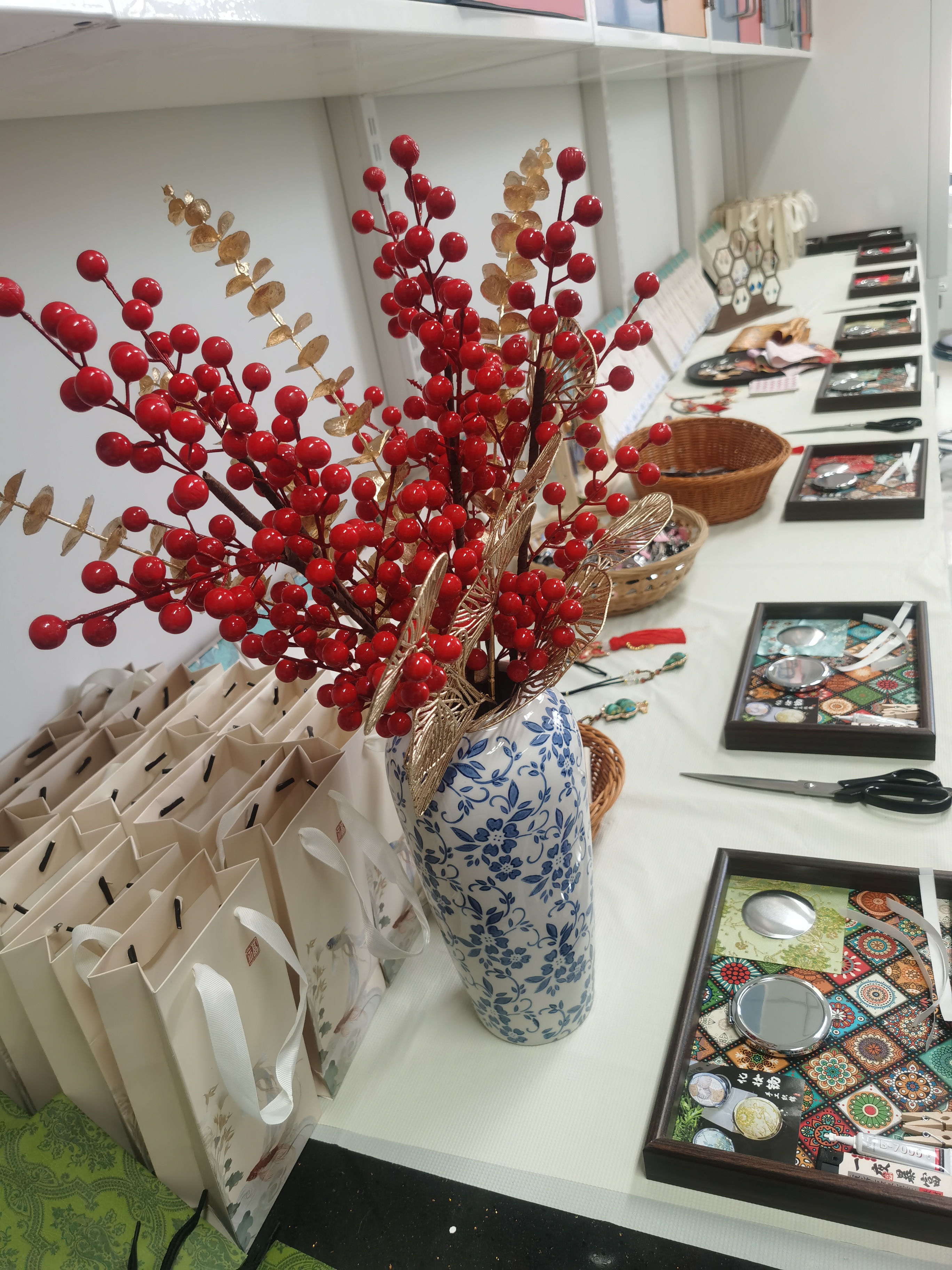 本次活动精心准备了点翠胸针、珍珠手链、宋锦化妆镜三项手工制作内容。在专业老师的指导下,参与活动的老师们细致地勾勒纹样、镶嵌珍珠、装裱镜画,将传统工艺的雅致与巧思融入指尖。从点翠胸针的古典韵味,到珍珠手链的温婉光泽,再到宋锦化妆镜的东方意蕴,一件件饱含匠心的作品在老师们手中诞生,现场洋溢着欢声笑语与创作热情。活动不仅让大家在忙碌的教学科研之余,沉浸式感受了传统手工艺的魅力,更在交流协作中增进了同事间的情谊。此外,重庆时时彩 工会还为每位女老师准备了精美纪念品,传递着节日的祝福与关怀。